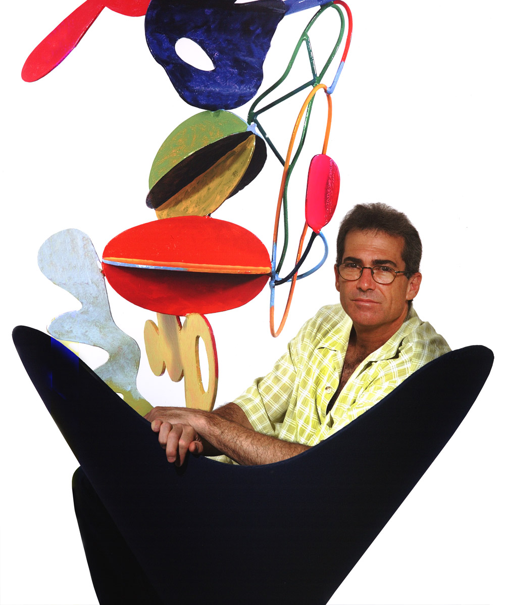 I photographed him with one of his sculptures in the background. I wanted him to be in the black chair with a shape befitting the work.