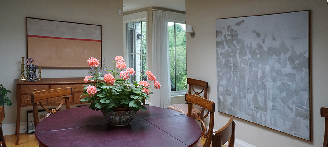 The left painting is an earth minimal and the right painting is one of my atmosheric "Silvern " series. It is now in a collection in Telluride Colorado.